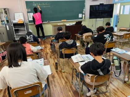 5年生は理科の時間に「天気予報」をしていました。アメダスの資料や雲の動きを見て天気予報をします。当たるといいね。
