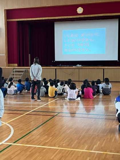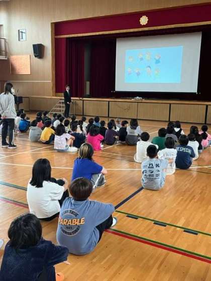 いじめについてのスライドを見ながら、どんな行動が大切なのかを考えました。「いじめは絶大に許されない行為」だと言うことを改めて考えました。