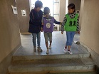 車いすに乗るだけではなく、車いすを押すときに気を付けないといないことや、目が不自由な人が歩くときの様子を実際に体験したり、介助の仕方を教えてもらいました。