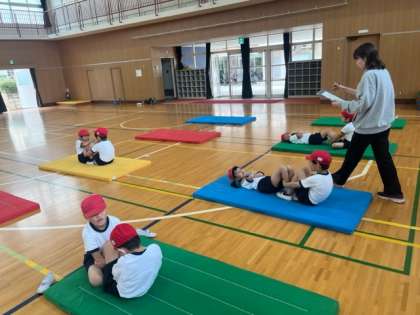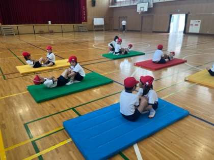 2人1組で上体起こしにも挑戦です。なかなか上手にできますね。