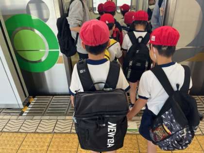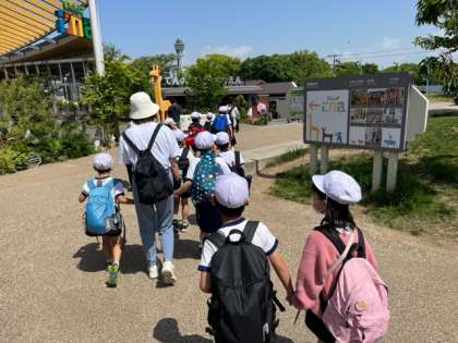 今日は、1.2年生の校外学習です。1年生は初めての校外学習です。しっかり歩いてがんばりましょう。