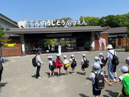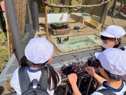 天王寺動物園に到着しました。さあ、みんなで動物を探しに行きましょう。初めは、カモ?