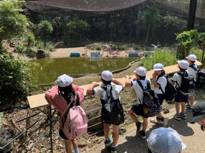カバを見て、フラミンゴを見て、キリンを見つけました。