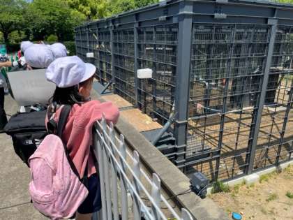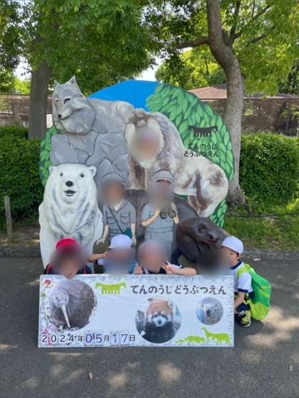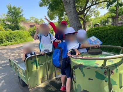 チンパンジーのポーズの真似をして、顔出しパネルも制覇して、探検カーにも乗りました。