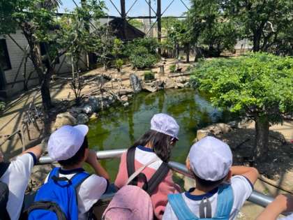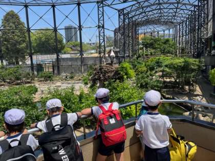 ホッキョクグマが遊んでいろところを見た後に鳥の楽園で鳥が飛んでいるのを見ました。
