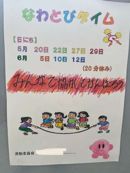 今週からなわとびタイムです。各学年、新記録をめざしてがんばります。
