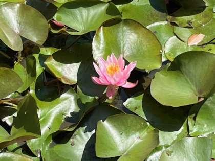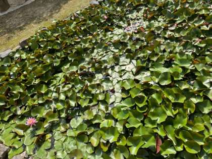 今年も睡蓮がたくさん葉をつけ、花が咲きました。池では大きな鯉が優雅に泳いでいます。