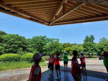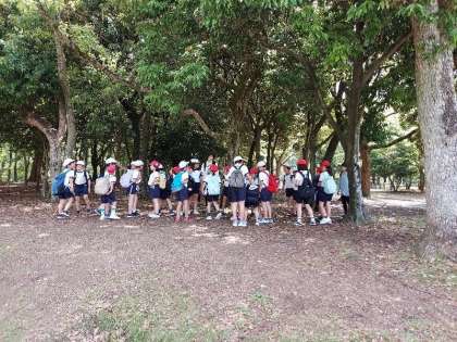大泉緑地公園では、ポイントをクリアしながら回ります。3年生と4年生で力を合わせてがんばります。
