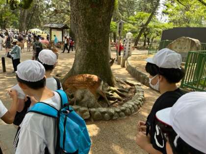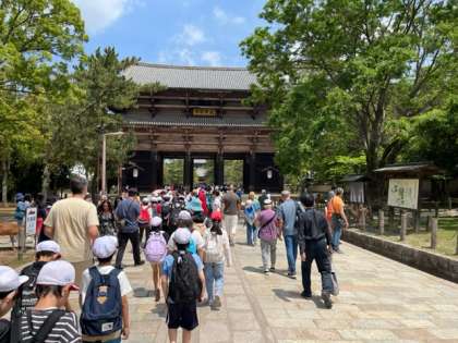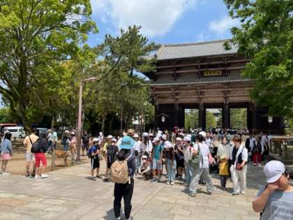 鹿がたくさん出てきています。東大寺の参道にも人と鹿がたくさんいます。