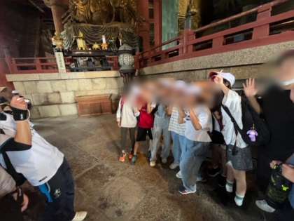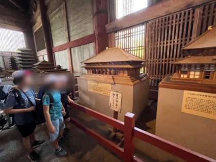大仏殿の中で記念撮影して、大仏殿の模型を見て、二月堂に向かいます。