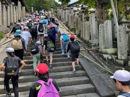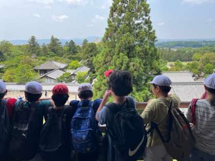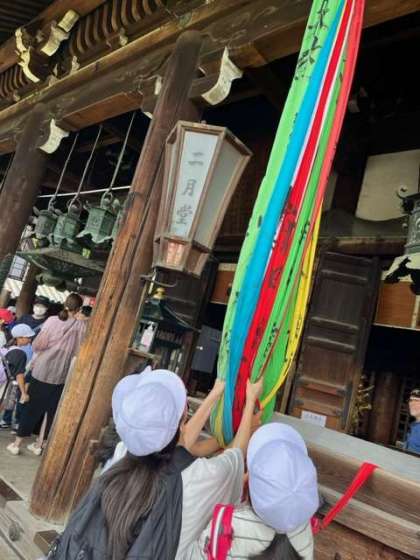 お水取りで有名な二月堂に来て、奈良の都を一望して、鈴を鳴らします。