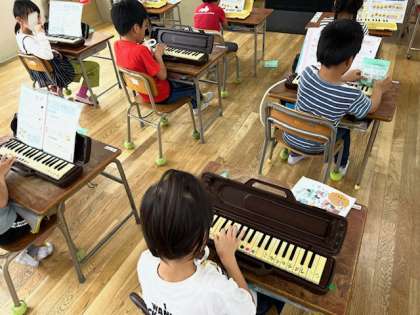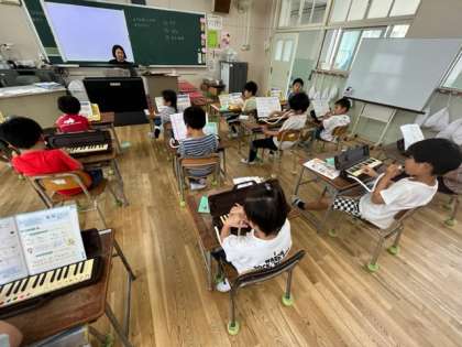 1.2年生が音楽の時間に、鍵盤ハーモニカを演奏していました。2年生は「かっこう」1年生は「つきよ」です。
