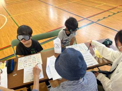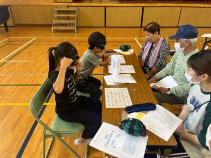 イヤーマフをつけて聞こえにくさを体感したり、手袋をつけて書きにくさを体験したりしています。