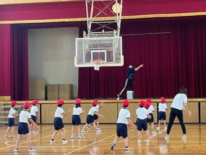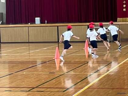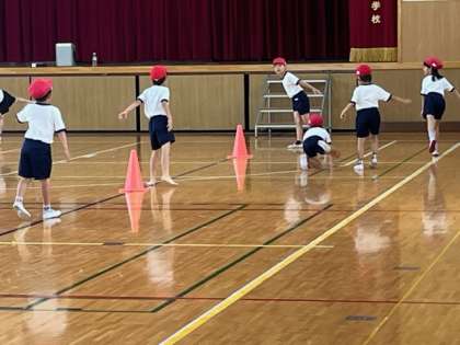 1.2年生の体育では、音楽に合わせて動いたり止まったり、楽しいダンスをしたりしていました。リズムに乗って体を動かすのは気持ちいいね。