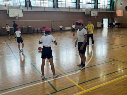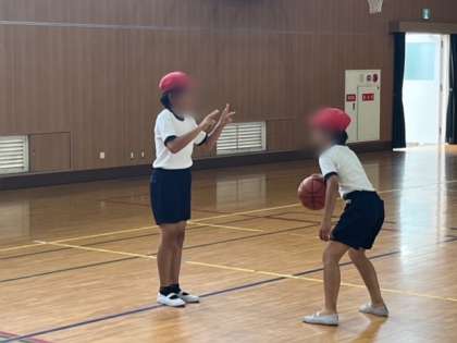 ボールキャッチや顔を上げてドリブル、シュートの打ち方を丁寧に教えていただきました。