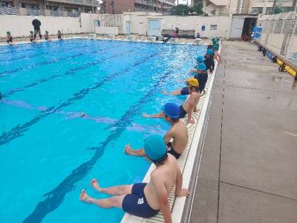 先週の金曜日に引き続き、今日は中学年のプール開きです。