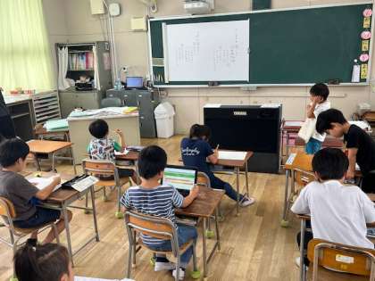 今朝は、1.2年生の朝の学習の様子です。2年生は漢検のテキストをしていました。