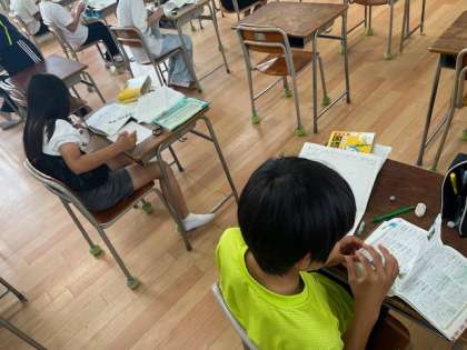 6年生が国語の時間に国語辞典を使って意味調べをしていました。物語的な文章「百羽のつる」です。高学年になると難しい言葉が多いです。