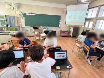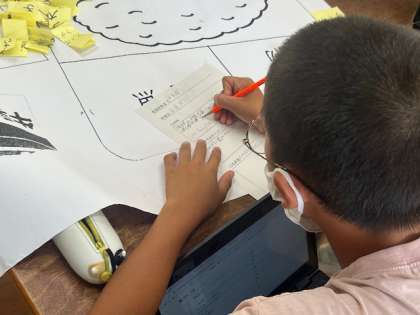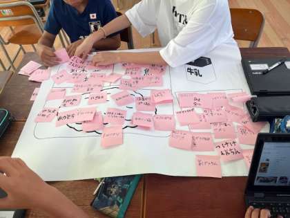 調べた献立の名前や材料を付箋に書いて、主菜、汁物、副菜などに分類します。給食で出てきたらいいなと言う簡単で分けていました。