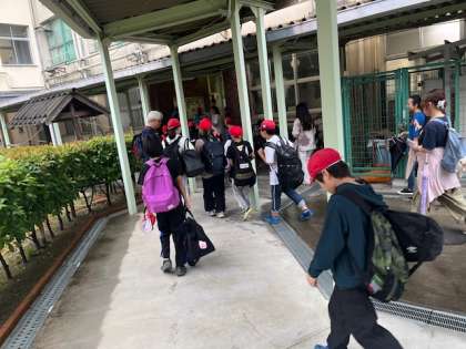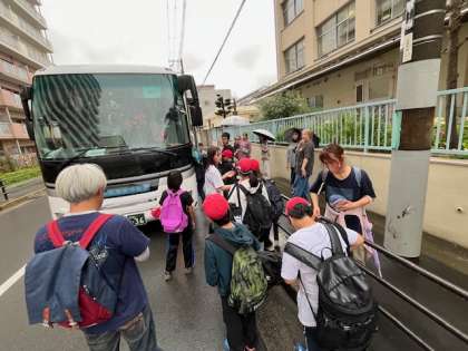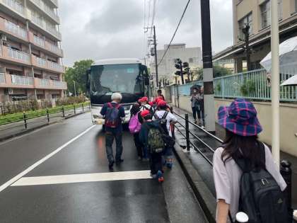 お家の人、寮の先生に見送っていただいて出発です。もう緊張とわくわくが止まらないようです。