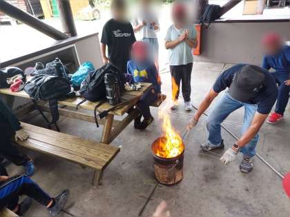 今度こそみんなで起こした火です。今日はこの火を使って活動をがんばりましょう。