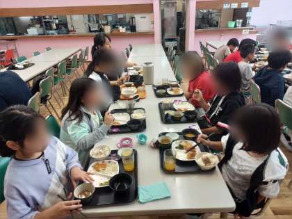 朝ごはんもしっかりいただきました。コロッケにウインナーソーセージ、パスタ、青菜の卵とじ、味噌汁、どれもとても美味しかったです。
