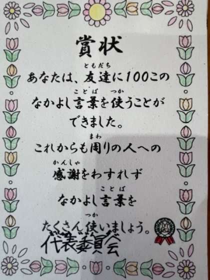 とても素敵な表彰状です。