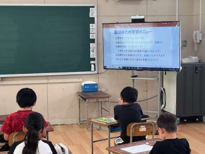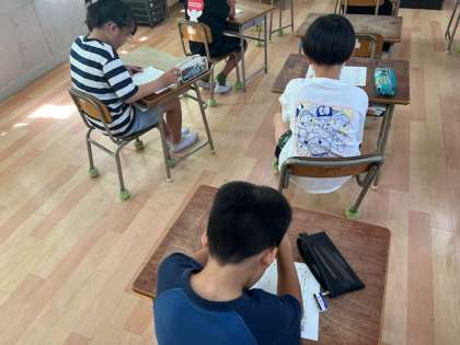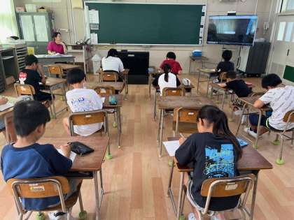 4年生が国語の「聞き取りテスト」をしていました。文章を聞いて問題に答えます。メモをとりながら問題に取り組んでいました。真剣ですね。