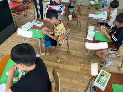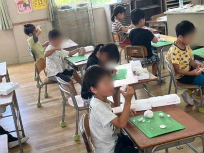 1.2年生は粘土でいろいろなものを作っていました。カブトムシ、トンボ、カエル、女の子、上手に見立てて作れますね。