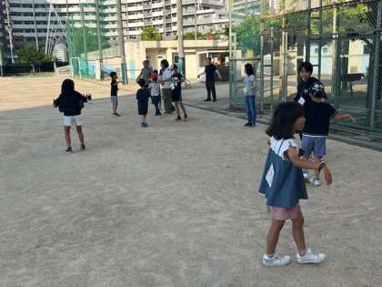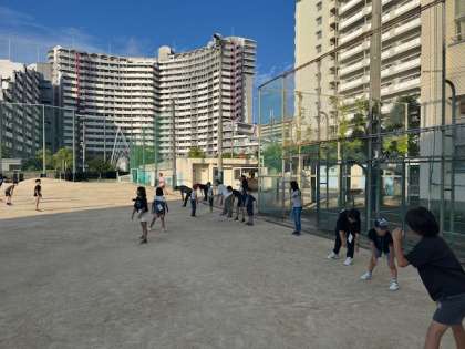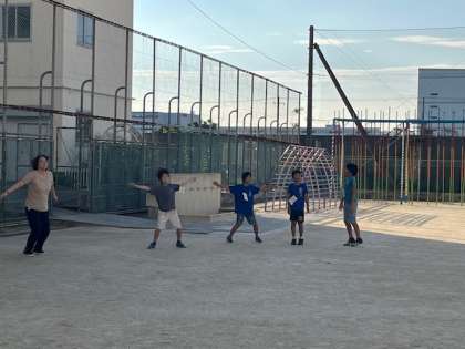 今日から夏休みです。池島地域恒例の朝のラジオ体操にたくさんの子どもたちが参加しています。