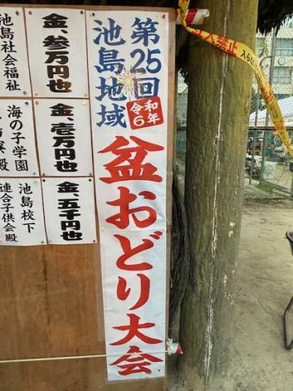 8月16.17日は第25回池島地域盆踊り大会です。日が暮れると風が心地よいです。