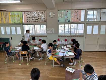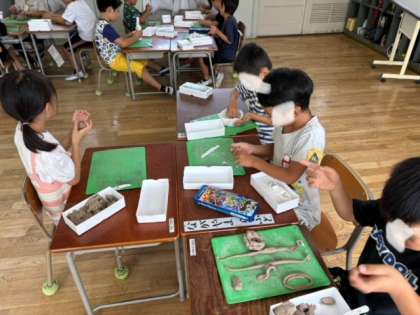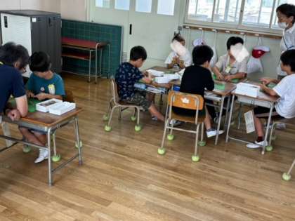 1.2年生は、粘土を使って造形遊びをしていました。おむすびまんは、とってもかわいいです。スライダーを作っている子もいます。
