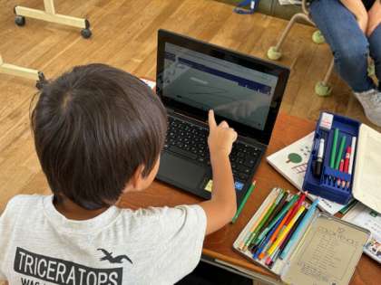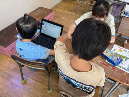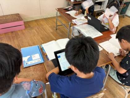 1.2年生が算数の時間に計算問題をしていました。早く終わった子は、デジタルドリルにも挑戦していました。
