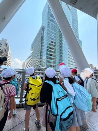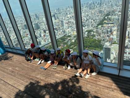 記念撮影をして、ハルカスにさよならです。お弁当はてんしばで食べます。