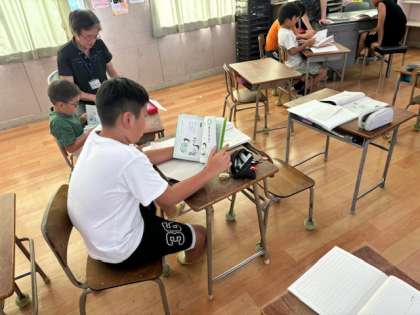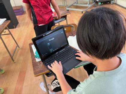 4年生が国語の時間に「故事成語」を調べていました。コンピュータで調べたり本を読んだりして調べていました。