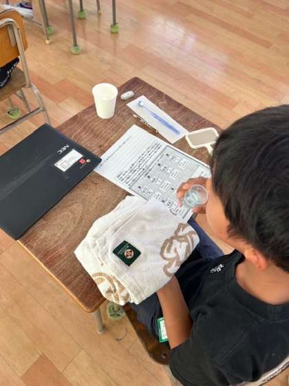 4年生がフッ化物の塗布をしまいました。まずは、お口の中をきれいにしましょう。