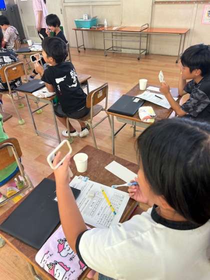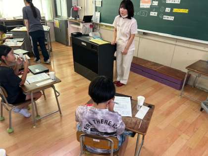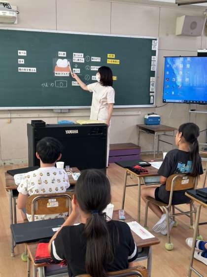 歯科衛生師さんから虫歯の原因や歯磨きの方法を学びました。そのあとは、歯磨きの実践です。