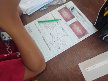 自分の歯の様子を歯磨き前に染め出して確認します。