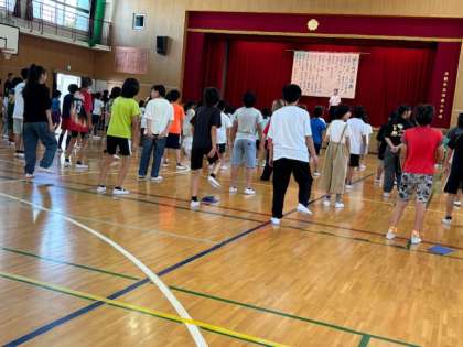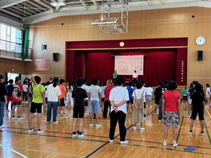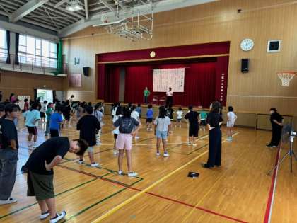 八幡屋小学校の4年生も来てくれて一緒にこんにゃく体操を学びました。