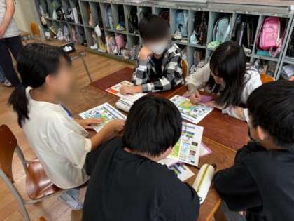 6年生が、2週間後に迫った修学旅行の活動計画を立てていました。楽しい時間ですね。