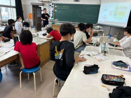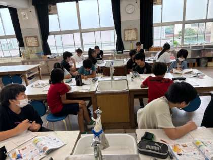 6年生が理科の時間に「水溶液の性質」の学習をしていました。薄い塩酸に金属は溶けるのか?予想はさまざまです。