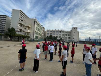 今朝は全校朝会です。校長先生から、ガザ地区での戦争の話を聞きました。みんな真剣に聞けていました。生活指導からは「廊下階段は右側通行をしよう」について、最近よく守られているとほめてもらいました。
