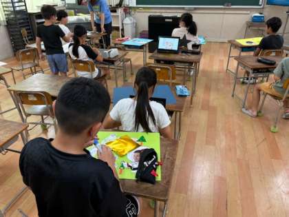4年生が図工の時間に「オリジナルピクミン」を作成していました。画面には自分も登場しています。どんな作品になるのか楽しみです。