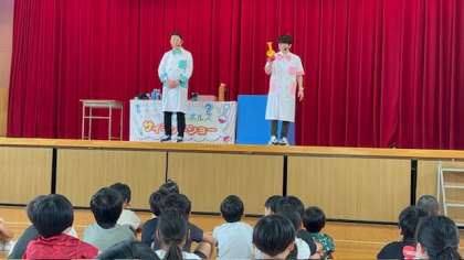 今日はボルトボルズさんに来ていただき「サイエンスショー」を見ました。何が起こるかワクワクします。