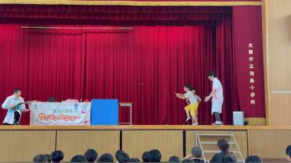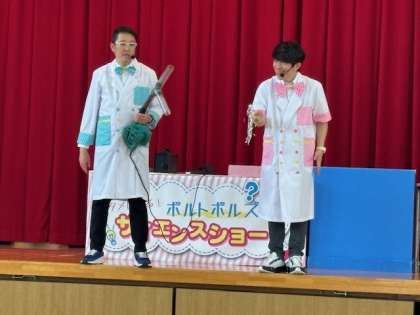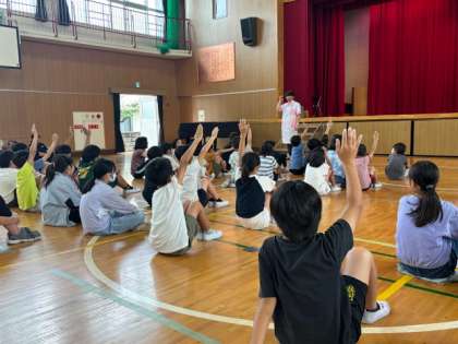 次は空気を使った実験です。参加者募集には、みんな手を挙げました。