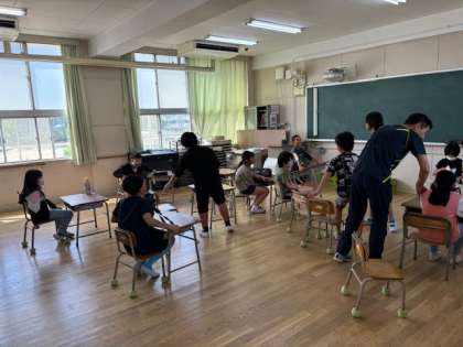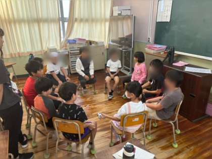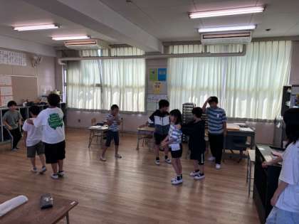 今日はなかよしタイムをしました。班長を中心に、自分たちで準備をしてゲームの説明をして楽しみます。学年を超えてなかよくできていますね。