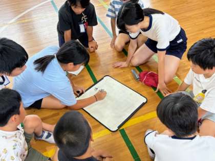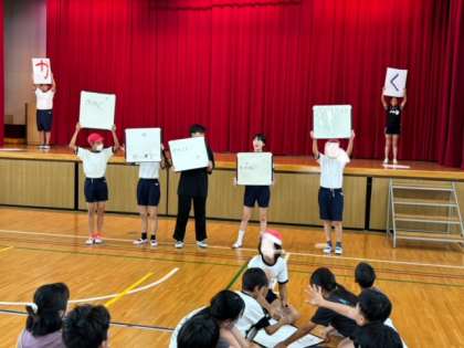 頭の文字は「か」おしりの文字は「く」で一番長い言葉は「かがくこうさく」でした。よく出たね。