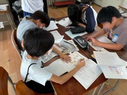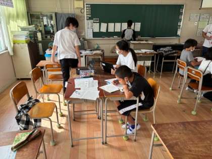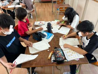 6年生は算数の「立体の体積」の問題に取り組んでいました。底面積かける高さの公式に当てはまれば簡単に溶けていました。