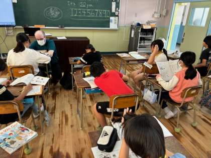 5年生は外国語の時間にオリジナルのメニューを作っていました。食材や食品を組み合わさせて値段をつけます。