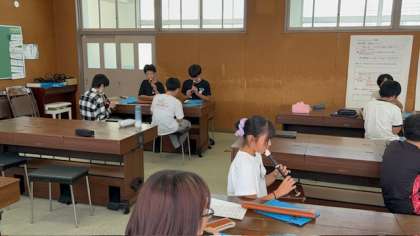 6年生の合奏の練習です。かなり上達してきたらしく、今日は譜面を見ないで演奏しています。「完璧や」と演奏後に自画自賛していました。